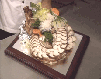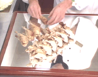 Turkey MirrorThis shows boning, marinating and cutting of turkey buffe and displaying on a mirror with garnishes. A smaller mirror is also shown. Ideal for functions. |
