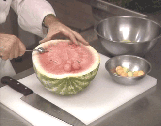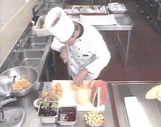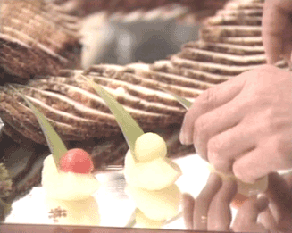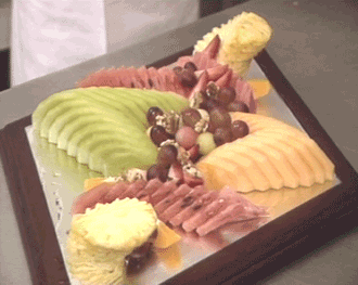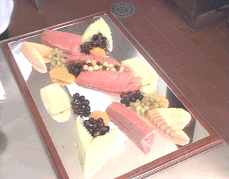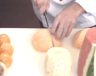 Fruit MirrorThis shows cutting and presenting a variety of fresh fruit, artistically, and skilfully placed on a mirror for a very impressive display. Great to add to your next menu. |